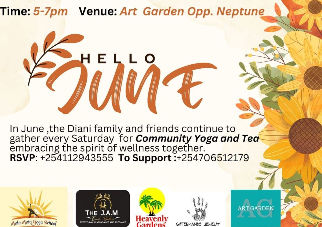 Join our community every week and let the stresses of the week melt away as you sink into soothing poses followed by music and dance over a cup of tea. All completely free at ArtGarden Diani opposite Neptune.